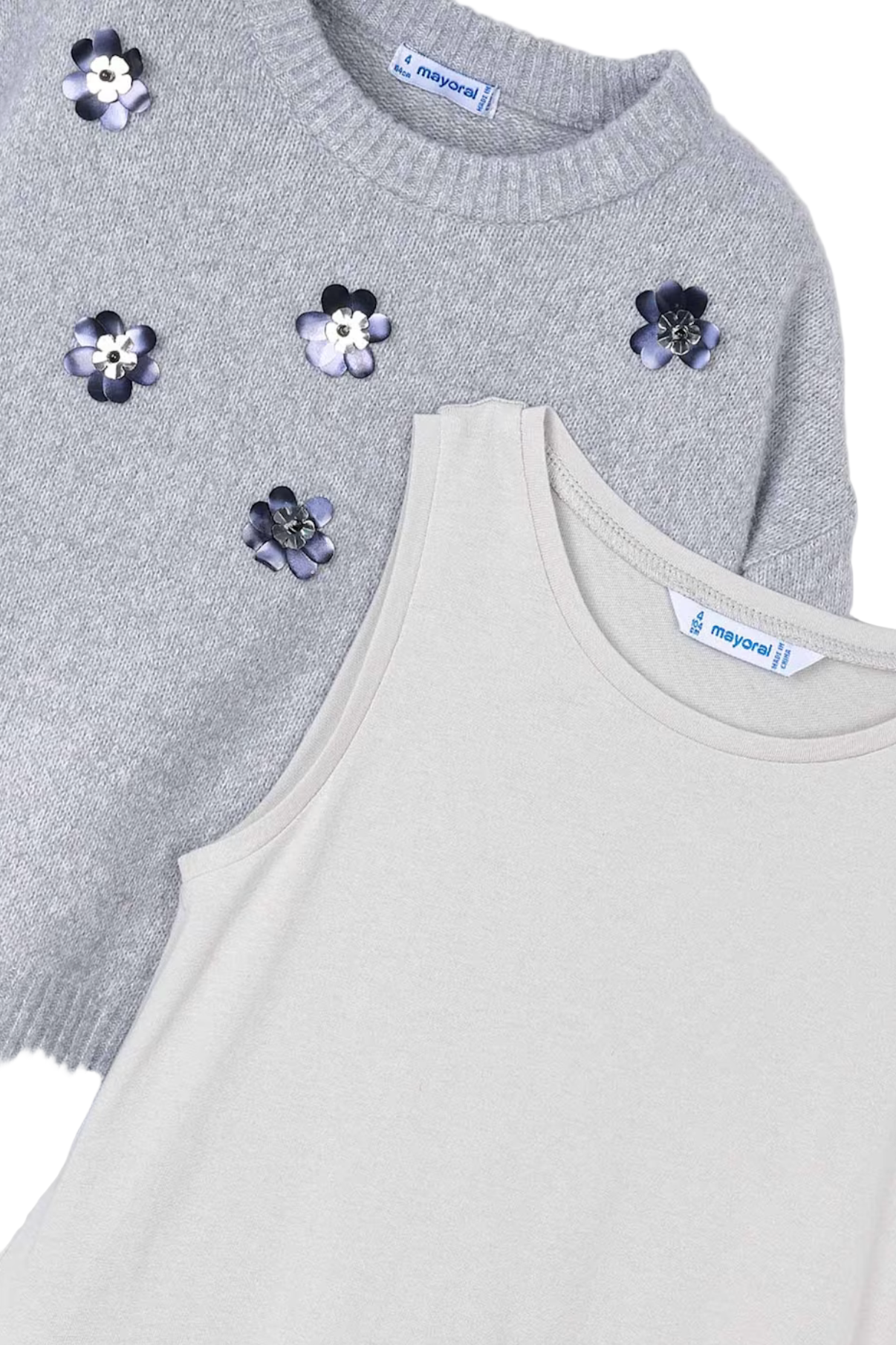 Long sleeved Sweater for girls. Round neckline. Decorative elements: floral appliques, Ribbed detailing.